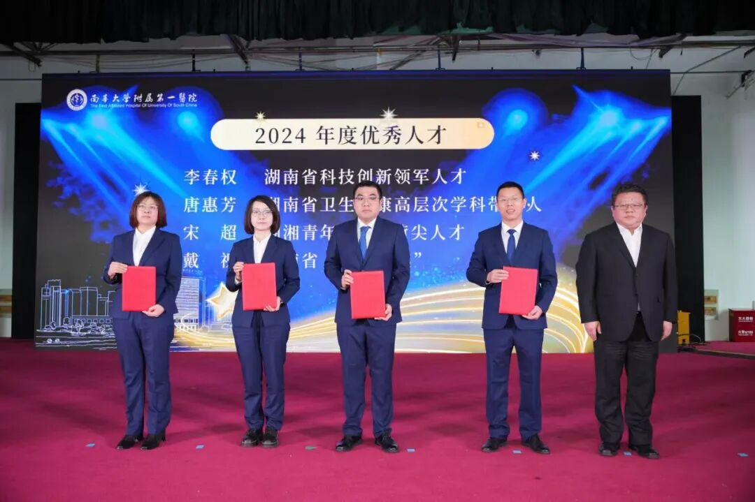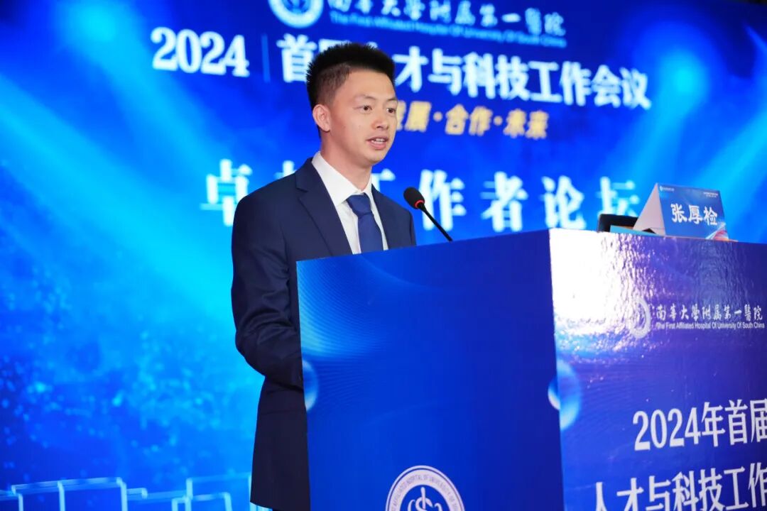 近日,南华大学附属第一医院组织召开医院首届人才与科技工作会议。会上,医院领导高度肯定了我院博士后科研工作,医院多名博士后获先进个人表彰。其中,入选2024年博新计划的张厚检、张文雕被评为医院2024年度优秀人才,并且作为优秀博士后代表在大会上发言;获国家自然科学基金青年基金项目的张文雕、殷豪、郭俞利、韩忆,以及获批“中国博士后科学基金”的殷豪、郭俞利、赖桂花被评为医院科技贡献个人。