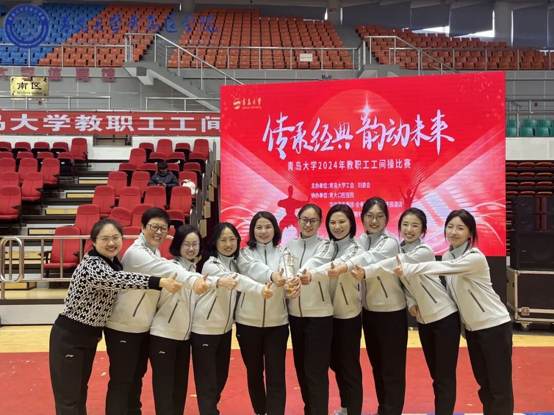 2024年11月28日,由青岛大学工会、妇委会主办的“传承经典,韵动未来”教职工工间操比赛顺利举行。青岛医学院教职工代表队凭借整齐规范的动作、积极向上的精神风貌以及出色的团队配合能力,充分展示了昂扬的风采与活力,在25支八段锦队伍和9支广播操队伍中脱颖而出,荣获本次比赛一等奖。