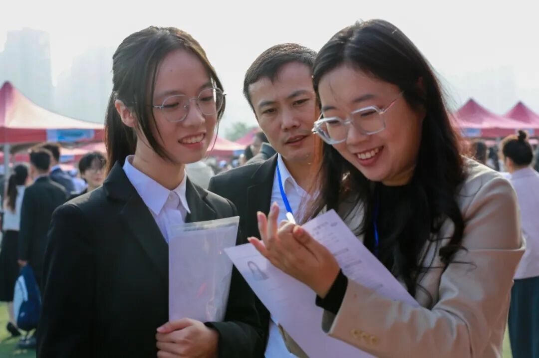 双选会当天现场氛围热烈,各用人单位根据自身特性,在展位前展示企业招聘海报或展板,介绍单位情况和用人政策,求贤若渴。毕业生们在心仪展位前咨询岗位需求,投递精心制作的简历,向单位咨询职业发展空间和薪酬待遇等问题。学校各相关部门、各院系相关专业老师和辅导员也在现场为同学们提供就业指导与服务,共同构建一个充满活力的招聘环境。许多毕业生表示,这次双选会让他们更直观地了解了用人单位的具体要求,帮助他们更加精准地定位自己的职业方向,提高自己的竞争力。一名应聘者表示:“感谢学校提供这个平台。通过与单位负责人的交流,我认识到了自己的优势和不足,更加明确了自己未来的职业发展方向。”截至下午2时,我校2025届毕业生在双选会现场成功签约236名,不少应聘学子找到了自己心仪的工作岗位。