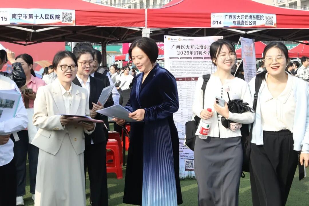 11月2日,广西2025届医药类高校毕业生就业双选会(桂林专场)在我校临桂校区火热举行。此次双选会吸引了广西区内外42个地市的378家各级医院、企事业用人单位入校招聘,为2025届毕业生提供 1496个职位、10883个岗位选择,本校及校外9863名医药类高校毕业生到场竞聘。