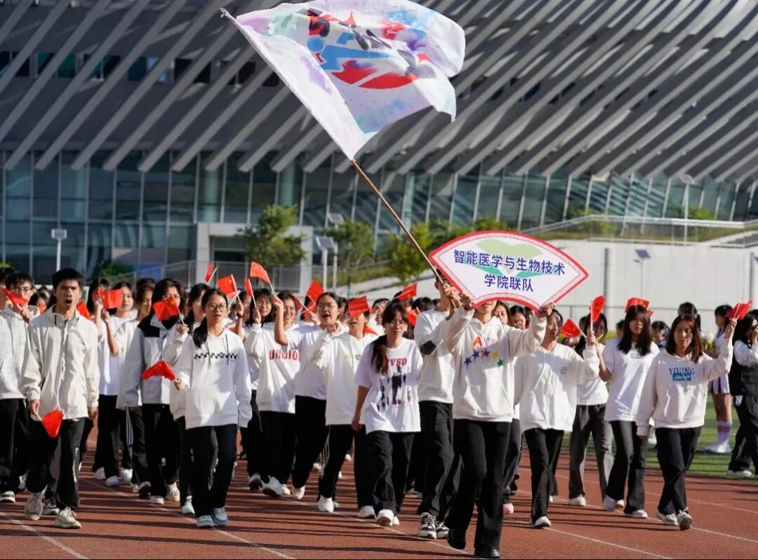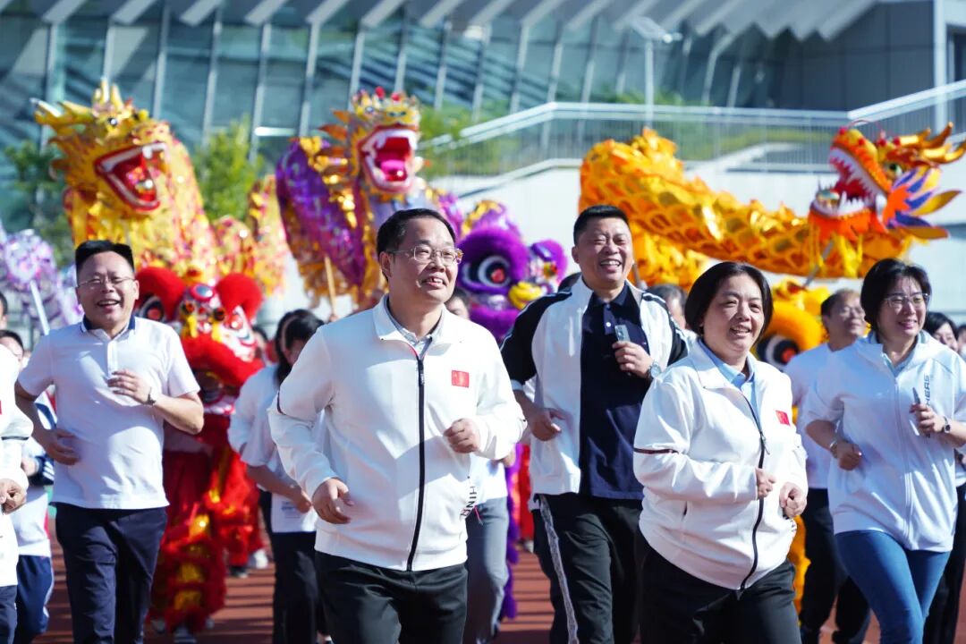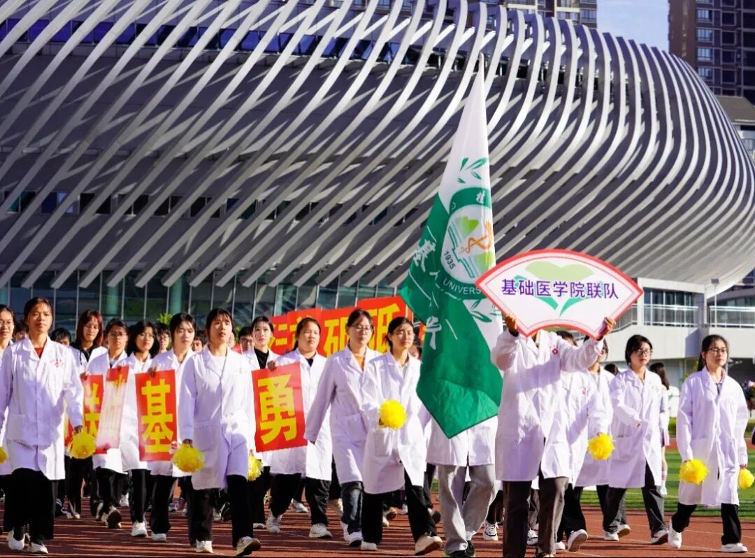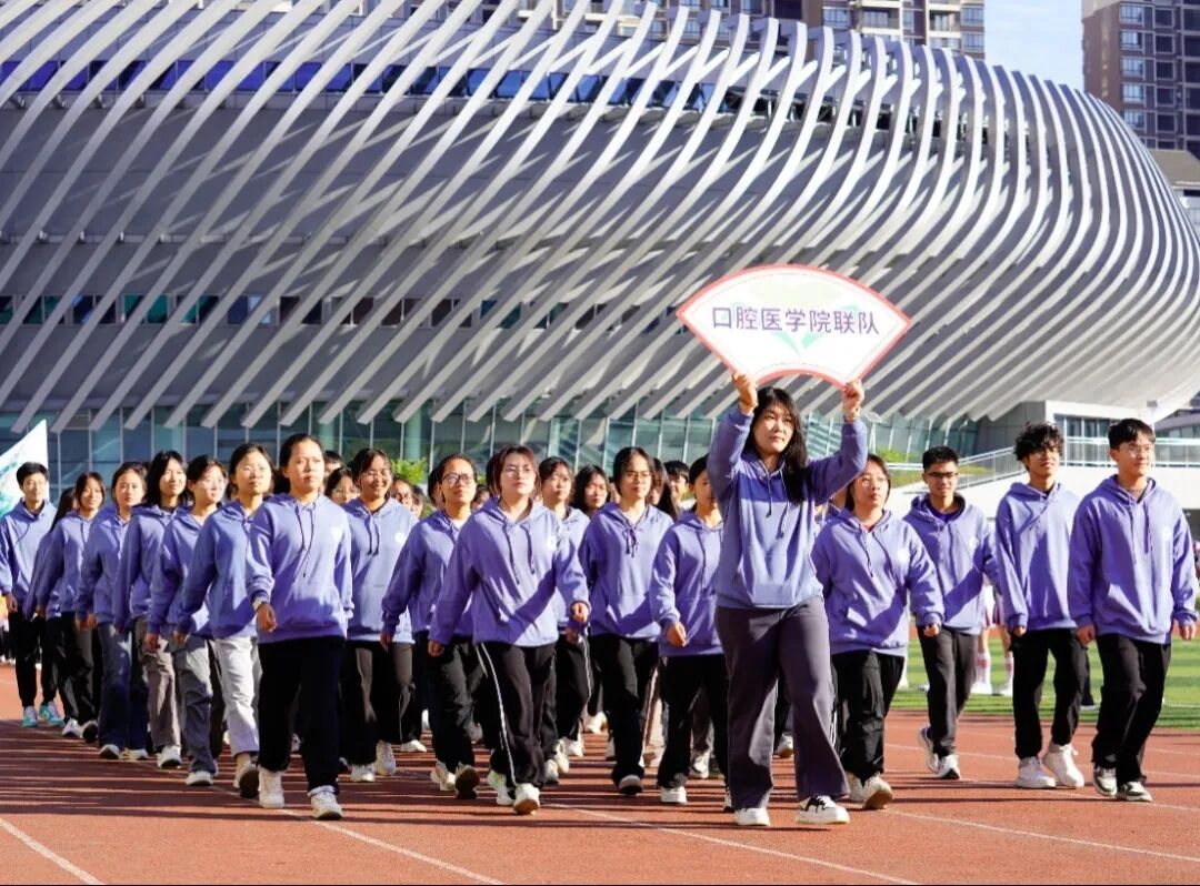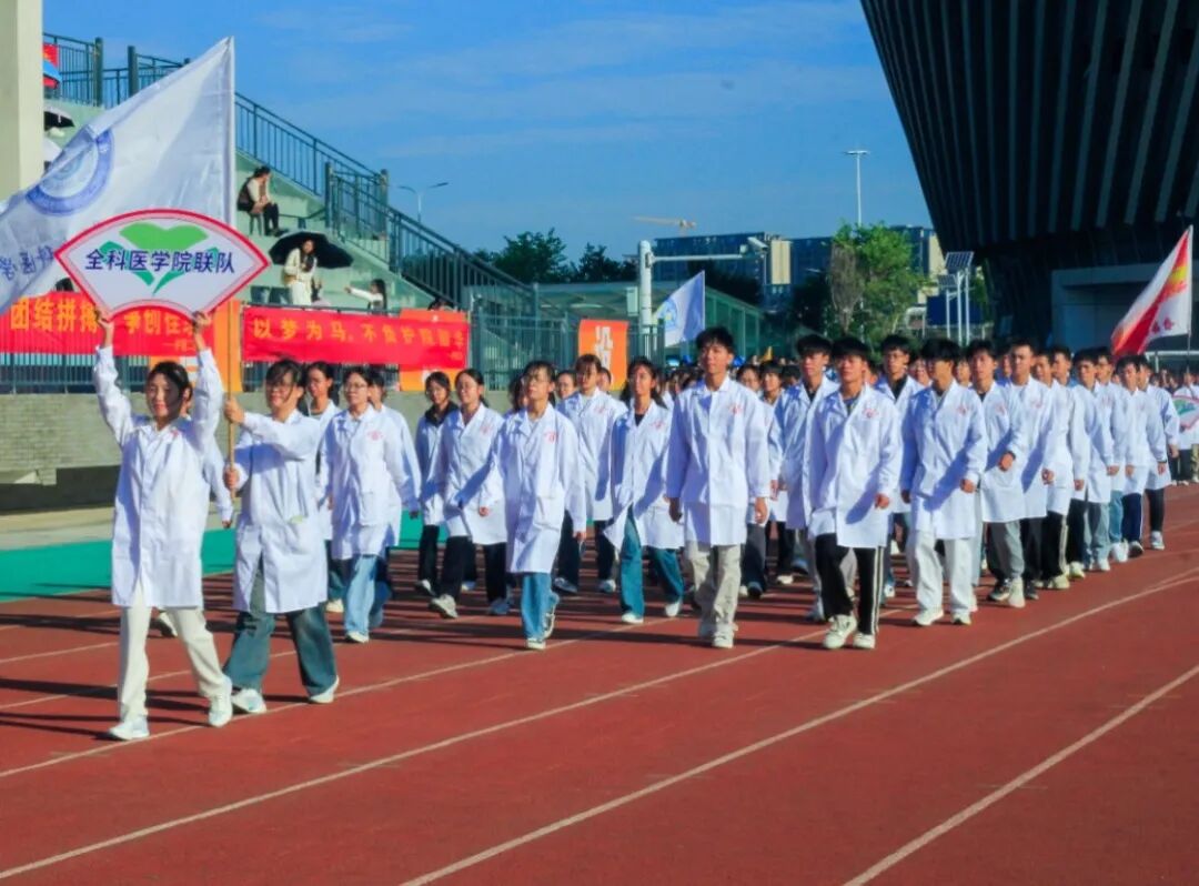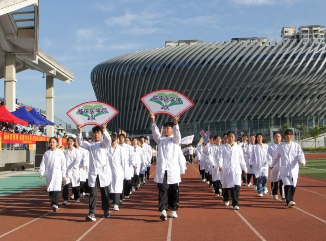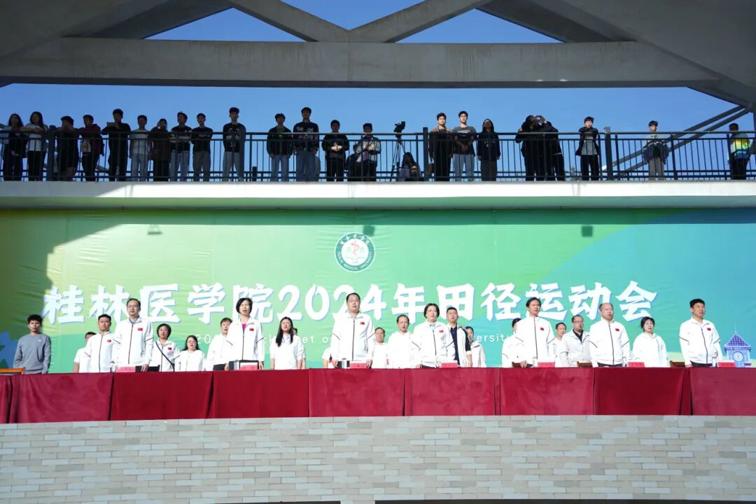 健青春之体,担强国之任。随着哨声响起,校领导们带队绕场领跑,运动员和各院系师生紧随其后,全体桂医人正以奔跑的速度,意气风发、精神抖擞,迈进新征程。