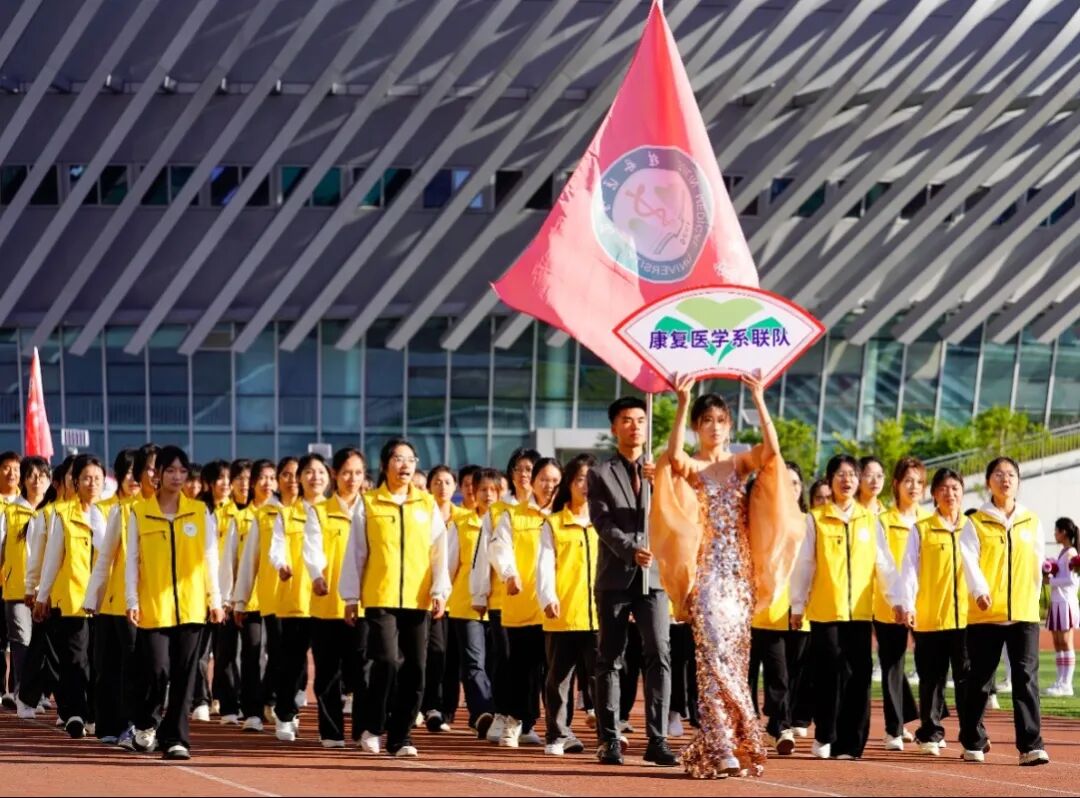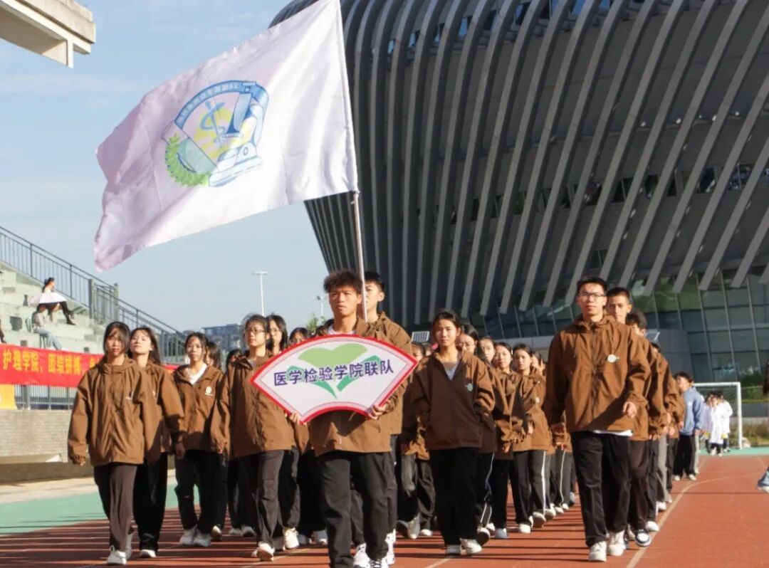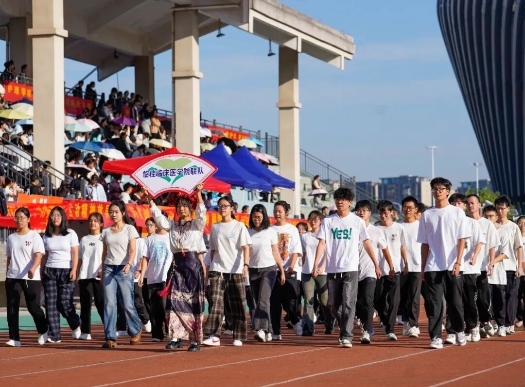开幕式上,24支来自不同院系师生组成的运动员代表方阵,踏着整齐的步伐昂首阔步依次入场,展示了桂医师生特有的蓬勃朝气。