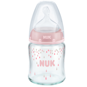 NUK宽口玻璃奶瓶粉色0-6个月硅胶奶嘴120ml 产品指数: 9.33 高硼玻璃德国制造 ¥123.5 去看看 母乳仿真喂养,锻炼吸吮吞咽能力,保护口腔健康,自动进气系统,喂奶时进气孔朝上,一瓶多用,高硼硅玻璃材质,靓丽印花,不含双酚a。