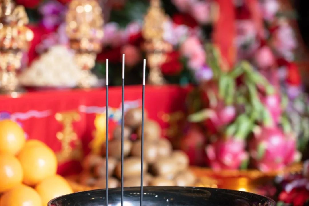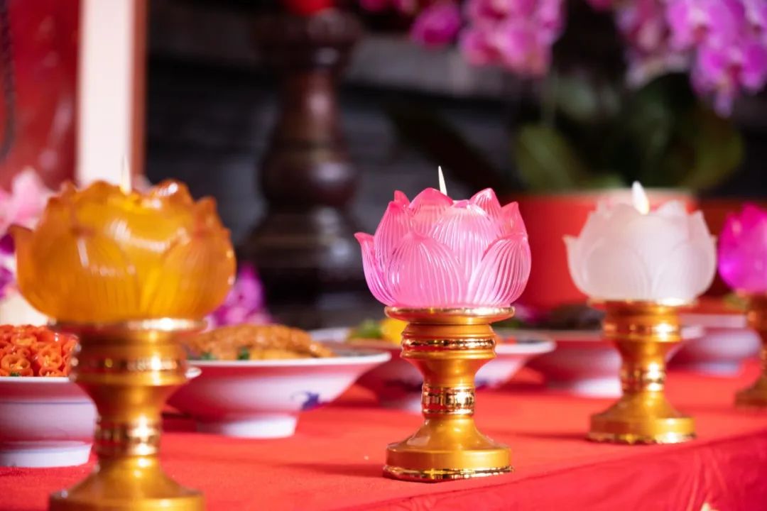 虔供清香素馔、花果明灯