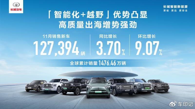 坦克SUV 11月销售新车20,189辆,同比增长8.68%;1-11月累计销售209,122辆,同比增长44.00%,全球累计销售58.01万辆。备受瞩目的坦克500 Hi4-Z将于12月3日开启预售。