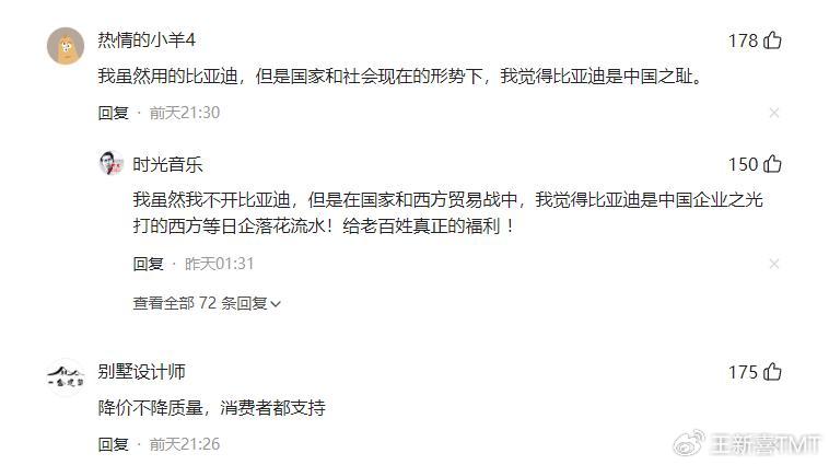 “我虽然用的比亚迪,但是国家和社会现在的形势下,我觉得比亚迪是ä¸å›½ä¹‹è€»ã€‚â€ä¸€ä¸ªé«˜èµžè¯„论ä¸ï¼ŒæŸç½‘勿¯«ä¸ç•™æƒ…的批判。