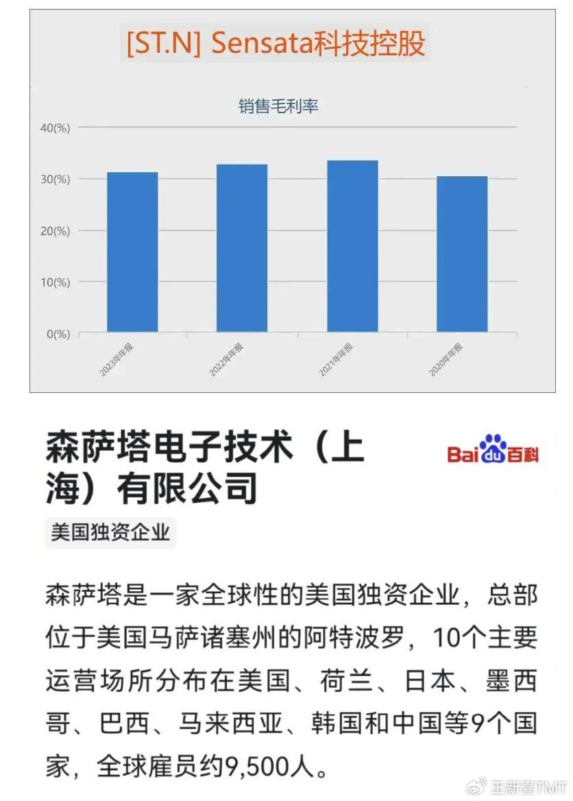 这家公å¸å…¨åå«åšç¾Žå›½æ£®è¨å¡”工业集团,全çƒä¼ 感器巨头,这家供应商的利润常年稳定在30%以上,去年利润高达38%,比亚迪自己的毛利率ä¸è¿‡20%而已。