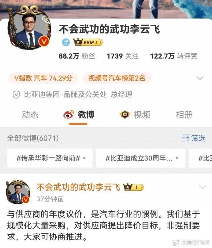 æ¯”äºšè¿ªè¦æ±‚供应商é™ä»·10%的消æ¯ï¼Œå¼•å‘了舆论关注,网å‹è¯„论一边倒,“比亚迪,给供应商留æ¡åŽè·¯å§ã€‚â€â€œæ¯”äºšè¿ªå·æ»ä¾›åº”å•†ï¼Œä½Žä»·å†…å·æ²¡æœ‰å‡ºè·¯ã€‚â€ã€â€œè½¦ä¼å·²ç»å·åˆ°å¤§é¢ç§¯äºæŸçš„æƒ…å†µä¸‹ï¼Œè¿˜è¿™ä¹ˆæ˜Žæ™ƒæ™ƒåœ°å¼ºç¡¬â€œè¦æ±‚â€æ•´ä¸ªä¾›åº”链也跟ç€å¾€æ»é‡Œå·ï¼Œè¿™æ ·çš„ä¼ä¸šåšäº§ä¸šè€å¤§çš„è¯ï¼Œè¿™è¡Œä¸šèƒ½è¡Œå—?â€