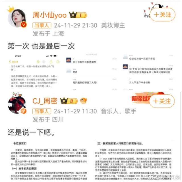 周密也强调,他和他的家人曾ç»å¯¹å‘¨èŠ¯ç«¹ç»™äºˆäº†è¯¸å¤šå¸®åŠ©ï¼ŒåŒ…æ‹¬å¸®åŠ©å¥¹æˆç«‹å…¬å¸ã€äº‰å–æ›´é«˜çš„åˆ†æˆæ¯”例ç‰ã€‚ä»–ç§°è¿™æ¬¡åˆ†æ‰‹å¯¹ä»–å’Œå®¶äººé€ æˆäº†å¾ˆå¤§çš„è´Ÿé¢å½±å“,尤其是精神压力和å誉æŸå®³ã€‚æ¤äº‹ä¸€å‡ºï¼Œä¸å°‘网å‹å¼€å§‹è½¬å‘ç»´æŠ¤å‘¨å¯†ï¼Œå¹¶åˆ°å¥³æ–¹è¯„è®ºåŒºæ±‚é“æ‰ã€‚