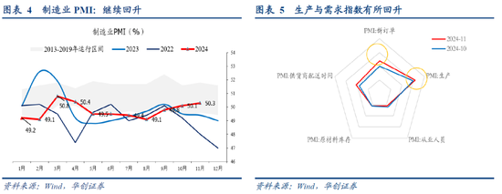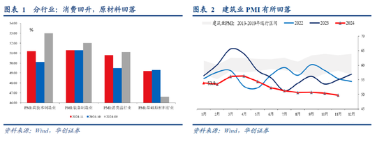 2ï¼‰åˆ¶é€ ä¸šå†…éƒ¨æ¥çœ‹ï¼Œæ¶ˆè´¹å“åˆ¶é€ ä¸šä»¥åŠå—益于两新政ç–的行业景气有所回å‡ï¼Œä½†å»ºç‘ä¸šç›¸å…³é“¾æ¡æ™¯æ°”有所回è½ã€‚具体而言,消费å“åˆ¶é€ ä¸šPMI为50.8%,较上月上å‡1.3个百分点,æ®ä¸é‡‡è§£è¯»ï¼Œâ€œä¸´è¿‘年底,年货相关消费å“å¸‚åœºæœ‰æ‰€å‡æ¸©â€ã€‚é€šç”¨è®¾å¤‡ã€æ±½è½¦ç‰è¡Œä¸šç”Ÿäº§æŒ‡æ•°å’Œæ–°è®¢å•指数å‡ä½äºŽ54.0%ä»¥ä¸Šï¼Œäº§éœ€è¾ƒå¿«é‡Šæ”¾ã€‚åŸºç¡€åŽŸææ–™è¡Œä¸šPMI为49.2%,较上月å°å¹…下é™0.1个百分点。