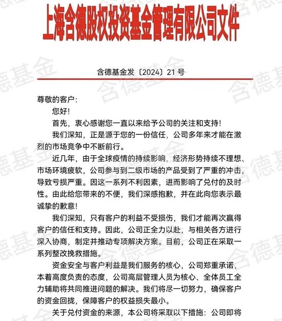 近日,有多位投资者像本平台爆料,上海含德股权投资基金管理有限公司(简称“含德基金”)无法兑付,且疑似含德基金实控人于小彬在网传视频中表示,资金实际上并未投向合同约定的项目。