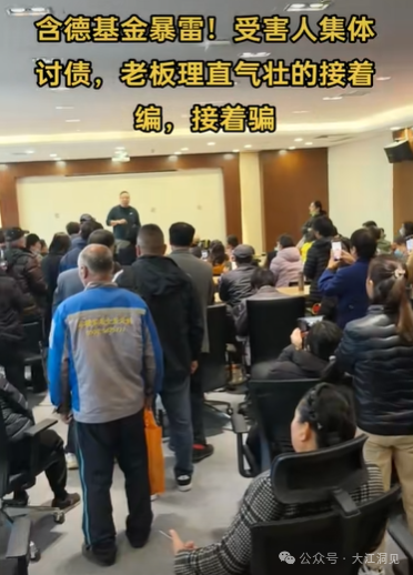 投资人发布的视频显示,众多受害人集体讨债,人数众多。