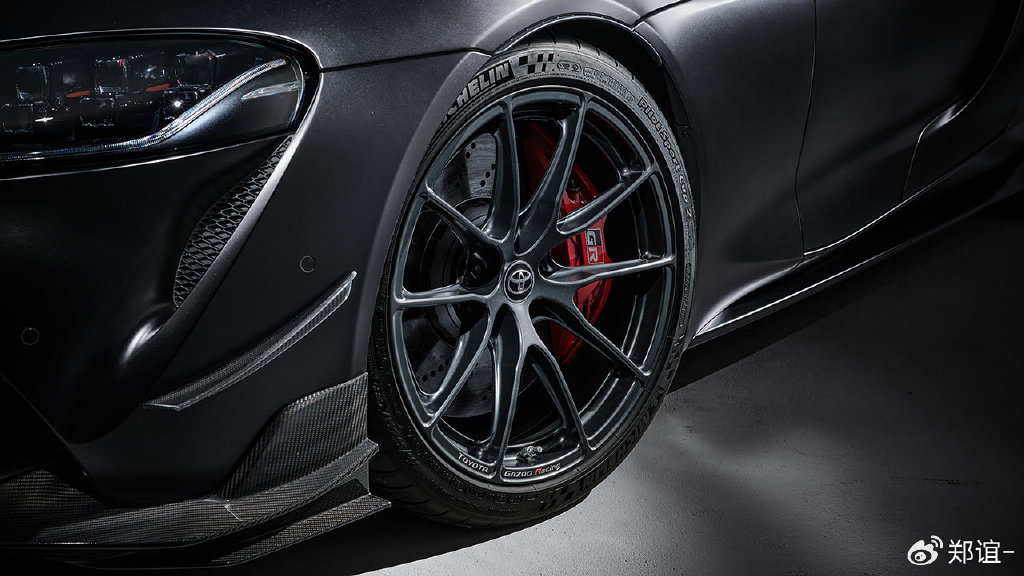 制动系统采用Brembo产品,具有提高摩擦系数的刹车片、直径395毫米的前轮盘和4活塞卡钳。使用不锈钢网状刹车软管,最大限度地减少因软管膨胀而造成的压力传递损失,并最大限度地提高刹车系统的性能。轮胎是米其林飞行员,比现有SUPRA搭载的宽度宽10%左右,具有更高的抓地力。