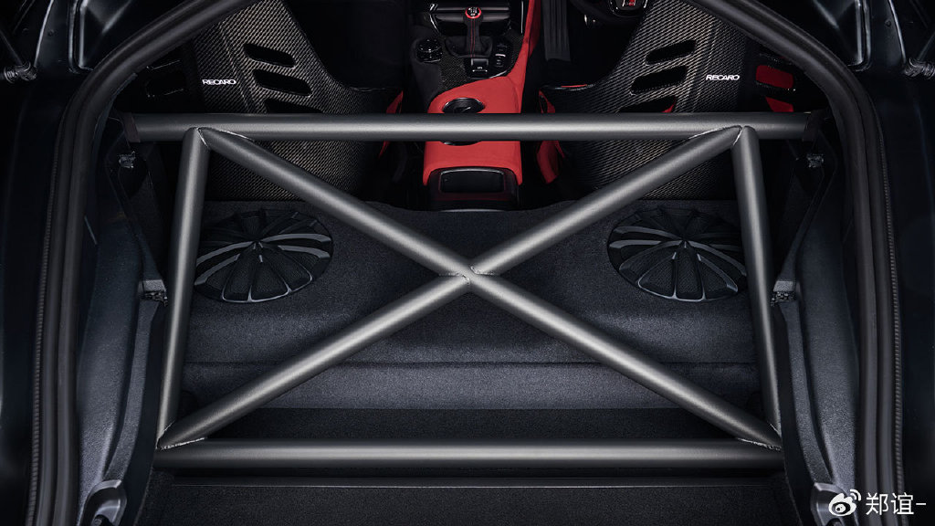 此外,前轮还采用了直径为374毫米的4活塞Brembo制动系统。为了加强空气力学性能,尾部采用了碳纤维材料,使用大型扩散器,优化了下倾平衡和性能。室内材料使用真皮与翻毛皮组合。