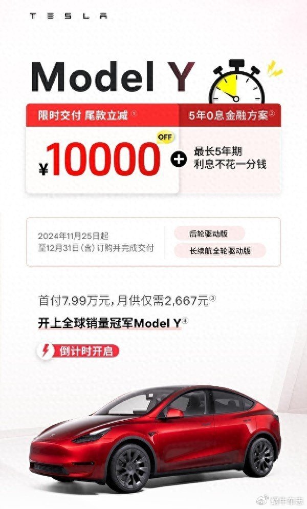 想来Model Y(配置|询价)在11月最后一周又将有一场销量大爆发,毕竟特斯拉又实打实为消费者多省了一万元,并且做到5年0息金融方案。官降后,Model Y后轮驱动版入手仅需23.99万,长续航全轮驱动版为28.09万元。