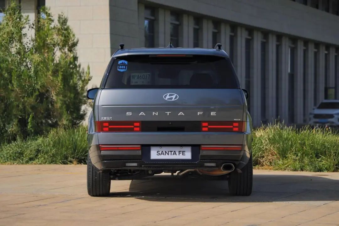 尾门上巨大的“SANTA FE”字样,并且车尾尾灯依旧采用H型造型,与前大灯形成呼应,不过单边单出的排气设计则略显低调。