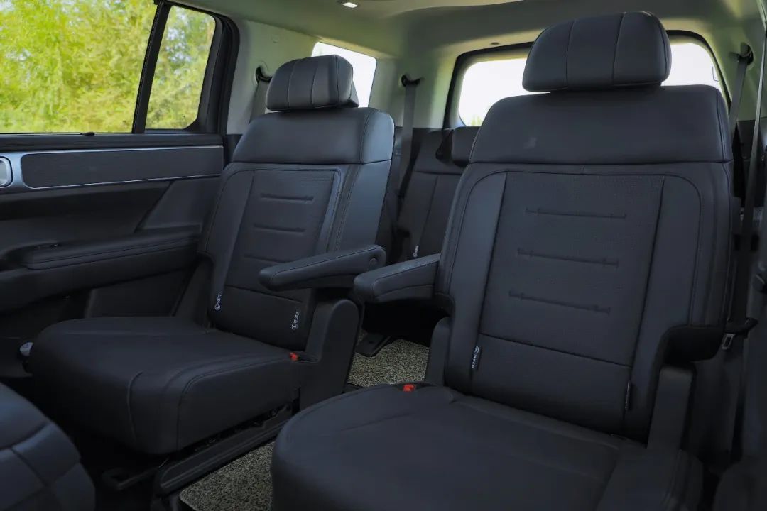 胜达的座椅标配2+3的5座布局或2+2+2的6座布局,不过消费者还可以选配2+2+3的7座布局。座椅采用Nappa真皮材质包裹,除了入门版以外,其他车型的座椅会根据配置提供到座椅加热、通风、按摩、零重力功能,并且第二排座椅支持一键收起模式,把第二排和第三排的座椅放倒之后后备厢的容积为2046升。
