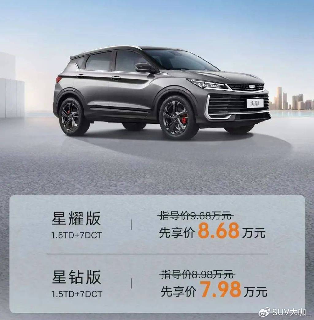 从推出的两个配置来看,两个配置之间的差价为7000元,高配星耀版多出了前排侧气囊、L2级驾驶辅助系统、ACC自适应巡航、透明底盘、自适应远近光灯、6扬声器。大咖认为,8.68万元的星耀版性价比要更高一些。
