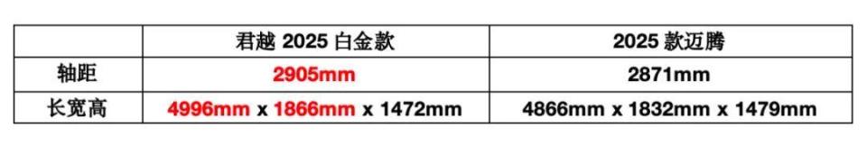 从数据来对比,君越在长宽和轴距上有显著超越,尤其是轴距上的优势,能够带来车内第二排乘坐空间的扩展。