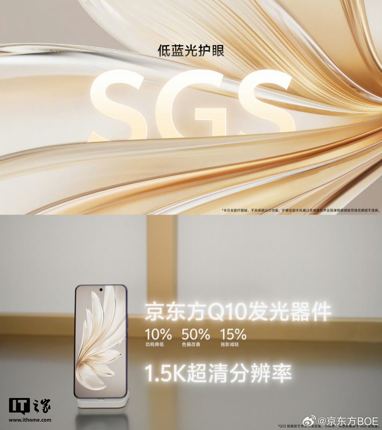 采用京东方全新一代 Q10 发光器件,拥有 1.5K 分辨率和 100% DCI-P3 色域,局部峰值亮度 5000nits