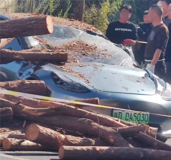 据悉,事故发生在江西,一辆Model 3在行驶时,将一辆满载湿木头的货车撞倒,货车拉运的湿木倾倒在Model 3车身上。