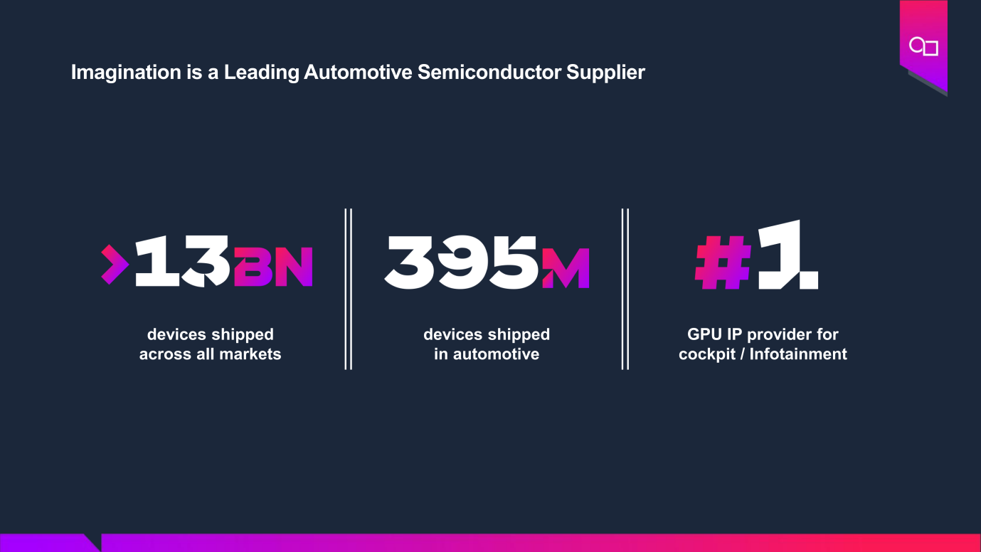 Imagination 是享誉全球的GPU IP提供商。1992年,该公司推出了创新的PowerVR GPU架构,采用该架构的GPU IP不仅在桌面应用、移动平台、消费电子和游戏设备等多个领域产生了广泛影响并持续至今,而且在汽车领域也被诸多领先的芯片企业采用,全球已有高达130亿台电子设备和汽车采用了该公司的GPU IP。Imagination 在车载领域拥有超过二十年的技术积累,其GPU IP被用在驾驶、座舱与信息娱乐系统等领域的芯片中;作为汽车GPU IP的领先供应商,具有领先同侪的市场占有率。其DXS GPU的问世,不仅满足了现代汽车对中央处理单元的高性能需求,还通过创新的分布式安全机制,解决了功能安全与性能、芯片尺寸之间的冲突,为汽车智能化进程注入了强劲动力。