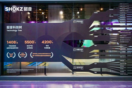 对于开放式耳机而言,出色的音质水平是骨传导耳机通常难攻克的技术难题。据IPR Daily数据显示,韶音开放式耳机全球申请发明专利1408项,位居全球第一。另据强国知识产权研究院的数据显示,截止至2024年11月1日,韶音凭借148项专利申请量成功跻身2024年中国企业在美发明专利申请30强。在Shokz Lab运动实验室的音质展厅中,韶音设置了骨传导技术和定向声场技术展示专区,通过韶音科技树展示了品牌近20年的声学技术沉淀。