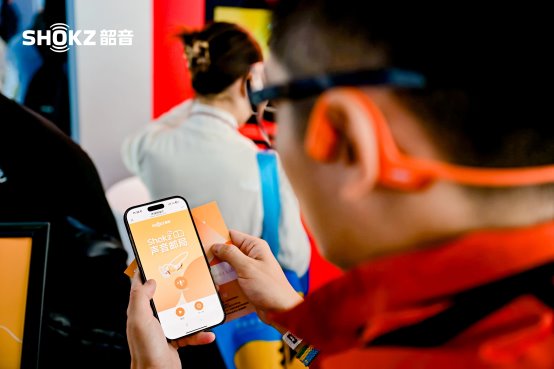 Shokz Lab运动实验室现场还带来了“感同身受”的体验环境,针对运动场景打造“开放聆听”的声学体验,划分了舒适与互动两大展厅,叠加受年轻人欢迎的跑酷互动游戏方式对产品进行试戴体验和稳固性测试。