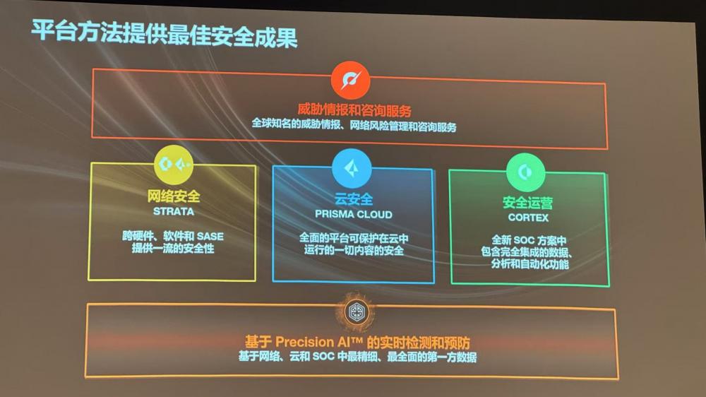 C114了解到,在过去五六年时间里,这家网络安全公司投入了大约10亿美金进行研发以及并购整合,眼下已形成全面覆盖网络、云端和端点的三大产品线,分别为网络安全、云安全、和安全运营,基于派拓网络的威胁情报以及接近20年的威胁数据库,能够对其整个平台上的数据进行收集并对比分析,再加上Precision AI解决方案,可以将云、网络、端点打通并进行AI精准检测与联防。