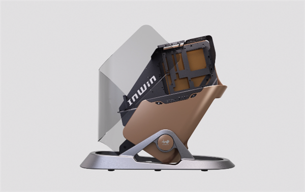 机箱的金属舱体巧妙地通过一个稳固底座支撑于桌面之上,用户只需轻轻一按,即可调节舱体与底座之间的倾斜角度,无论是安装硬件还是日常维护检查,都变得更加便捷高效。