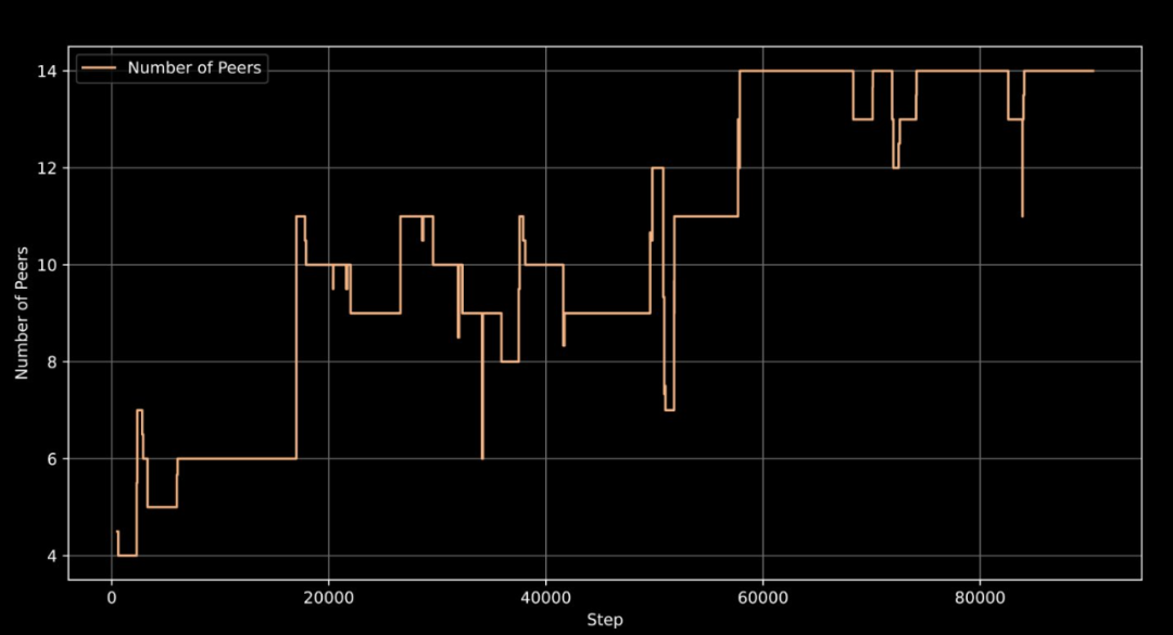 从训练过程的监控图表可以看出,PRIME 系统表现出色:即使参与训练的机器数量经常变化(从最少 4 台逐渐增加到最多 14 台),整个训练过程依然保持稳定,充分证明了系统的可靠性。