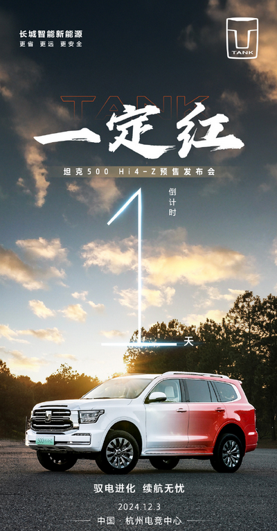 快科技12月2日消息,长城汽车今日发文表示,旗下全新车型坦克500 Hi4-Z将于明日(12月3日)开启预售。