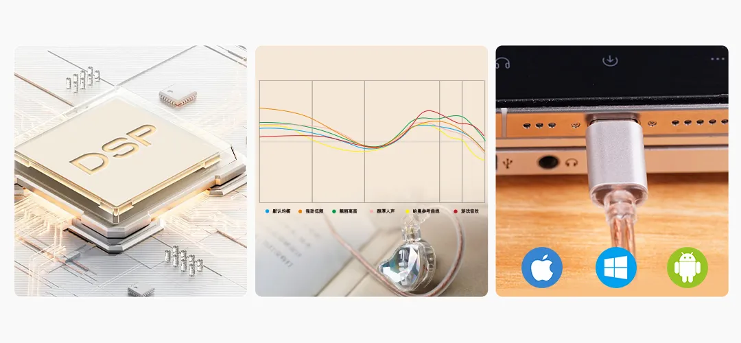JD10 单只耳机净重约为 3.7g;内置独立 DSP 音频解码芯片、6 种调音预设;采用标准 Type-C 接口,兼容 Windows / macOS / iOS / 安卓等平台。