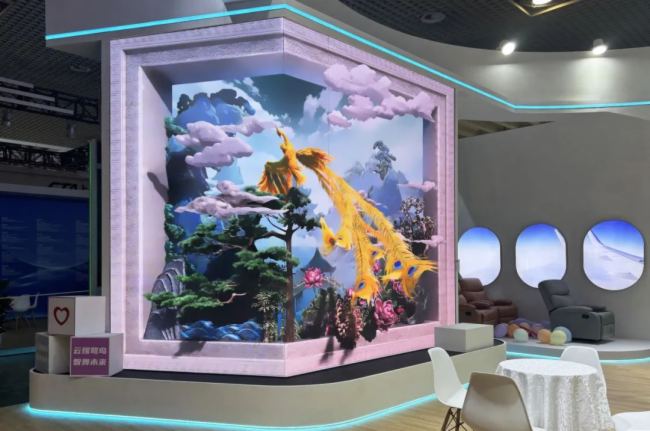 候机区的全贴合55寸户外电子站牌 和登机区的55寸高亮橱窗屏 ,通过多维度信息展示与高亮画质结合,提供更高效的信息传递与多场景视觉享受。在 寻觅梦境 场景,京东方的MiniLED技术打造了裸眼3D沉浸式体验,带领观众仿佛翱翔云端。