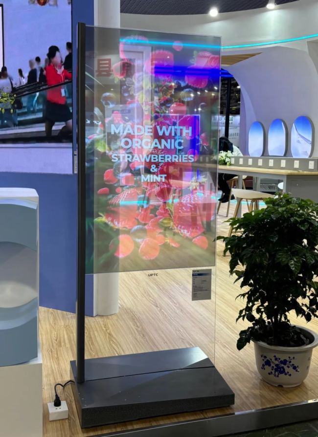 展台围绕航空旅客出行的每一环节,结合创新产品构建了智慧场景。值机区的43 寸户 外媒体终端 和55寸OLED透明数字标牌 ,将动态信息与炫酷视觉融合,为参观者带来耳目一新的体验。