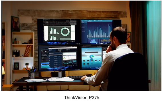 联想智享办公还考虑到了用户对高素质屏幕的需求,联想P27h 2K真彩全面屏,采用四面窄边框,菊链+满血主流接口支持,适用于多屏互联,快速搭建多屏拼接,为远程教育及会议场景提供支持。同时,P27h 2K还能与ThinkPad同步电源镜像,一键同步笔记本与显示器开关机,是ThinkPad用户的绝佳选择。