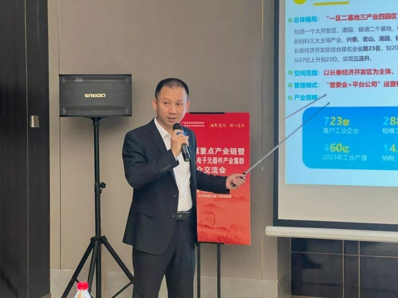 长泰区工信局局长王志忠从长泰的工业情况、电子信息县域重点产业链和国家级新型电子元器件产业集群发展优势等方面进行详细推介。