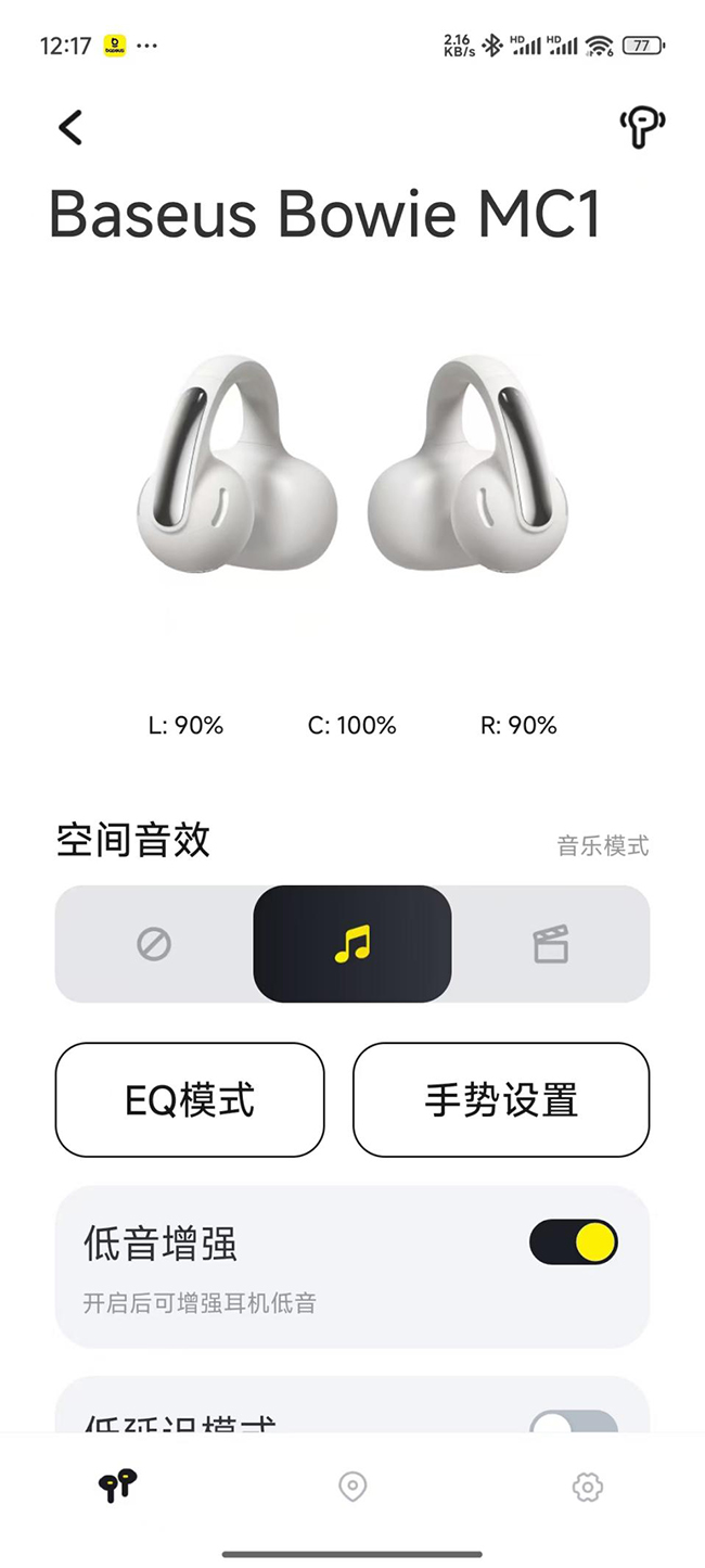 倍思MC 1耳夹耳机支持低时延和倍思专研的BISA空间音效技术,并获得QQ音乐“臻品音质”认证。在体验者玩《和平精英》的时候,明显地感受到画面和脚步声、枪声高度同步,以及环境中声音的空间沉浸感,可以利用声音的变化来迅速判断战场的局势,进而获得最终的游戏胜利。