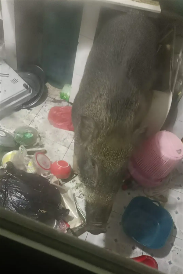 æ®æ±Ÿè‹åª’体报é“,近日在å—京,一头300多斤的野猪åŠå¤œä»Žçދ女士家æ‚物间屋顶å è½åŽé—¯å…¥åŽ¨æˆ¿ï¼ŒçŽ‹å¥³å£«ä¸ˆå¤«å¬åˆ°å¼‚å“åŽèµ·åºŠæŸ¥çœ‹ï¼Œç»“果被野猪“å§å”§ä¸€å£â€å’¬ä¼¤è„šè¶¾ã€‚