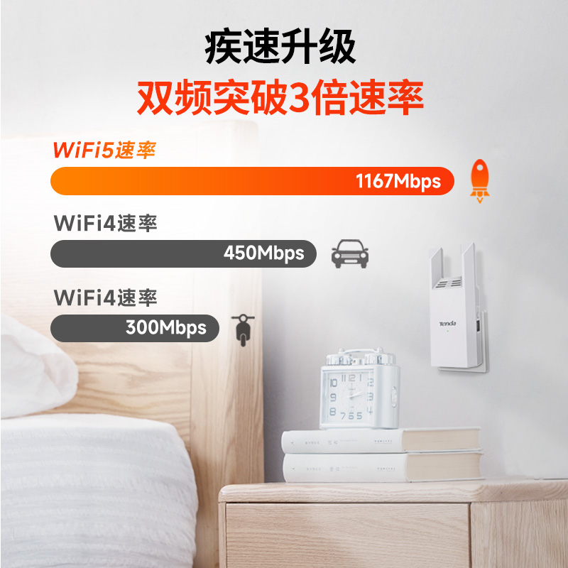 腾达 A18 Pro 支持智能双频技术,5GHz 频段无线速率可达 867Mbps,2.4GHz 频段无线速率可达 300Mbps。