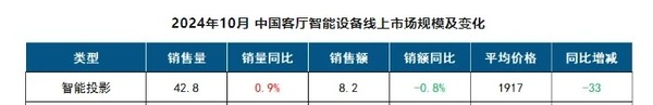 10月中国智能投影线上销量为42.8万台 终结持续下滑