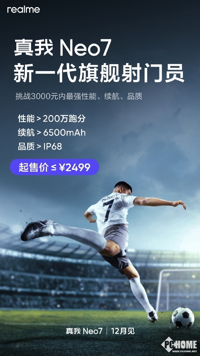 配置方面,真我Neo7将搭载高通骁龙8 Gen 3超频版以及一颗定制芯片,配备1.5K分辨率的电竞直屏,支持超百瓦有线快速充电。官方资料显示,真我Neo7跑分高于200万,电池容量高于6500mAh,防护等级高于IP68。真我已经官宣,真我Neo7的起售价≤2499,致力于成为新一代旗舰射门员,挑战3000元内最强性能、最强续航、最强品质。