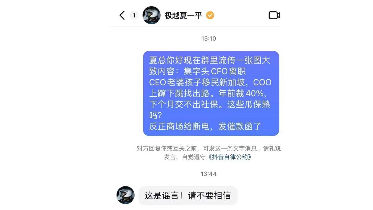 而也就在挨打传闻的同时,极越汽车开始规模裁员,不续签老员工,年前裁员40%,下个月交不出社保的消息,登上了热榜头条的位置。而我们与多位极越汽车公关部门的员工进行了沟通,得到的答案是一致的,这是谣言。但,却没有人能回答,夏一平脸上的伤,是为什么。