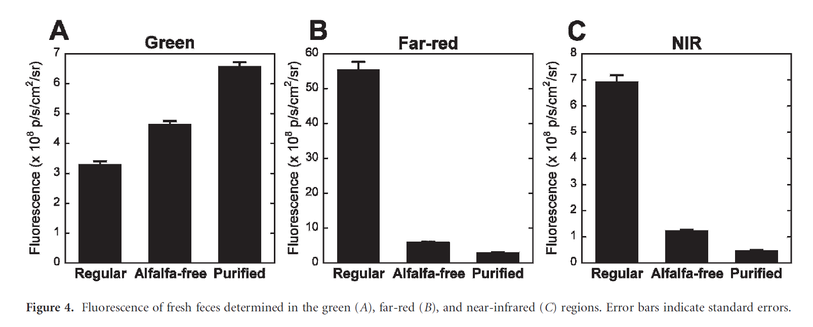 如果需è¦è¿›è¡Œæ¶ˆåŒ–铿ˆåƒï¼Œè‡³å°‘æå‰ä¸€å‘¨ä½¿ç”¨æ— è§å…‰é¥²æ–™å–‚养动物,以é¿å…è‹œè“¿ç´ çš„è§å…‰å¹²æ‰°ã€‚(Yusuke et al., 2008)