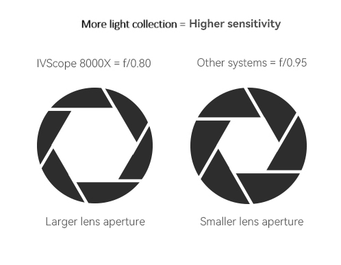 镜头光圈决定é€å…‰èƒ½åŠ›ï¼Œå‹¤ç¿”å°åŠ¨ç‰©æ´»ä½“æˆåƒç³»ç»Ÿé‡‡ç”¨f/0.8大光圈镜头,相比常è§çš„f/0.95镜头,é€å…‰èƒ½åŠ›æå‡30%,æˆåƒæ—¶é—´æ›´çŸï¼ŒèŽ·å¾—æ›´æ¸…æ™°å›¾åƒã€‚