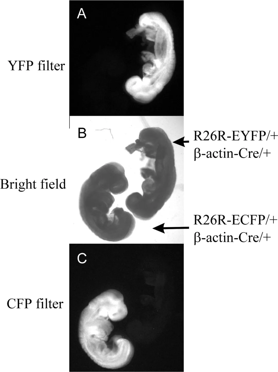 Srinivas, S., et al. (2001). Cre reporter strains produced by targeted insertion of EYFP and ECFP into the ROSA26 locus. BMC Developmental Biology, 1(1), 4. doi:10.1186/1471-213X-1-4