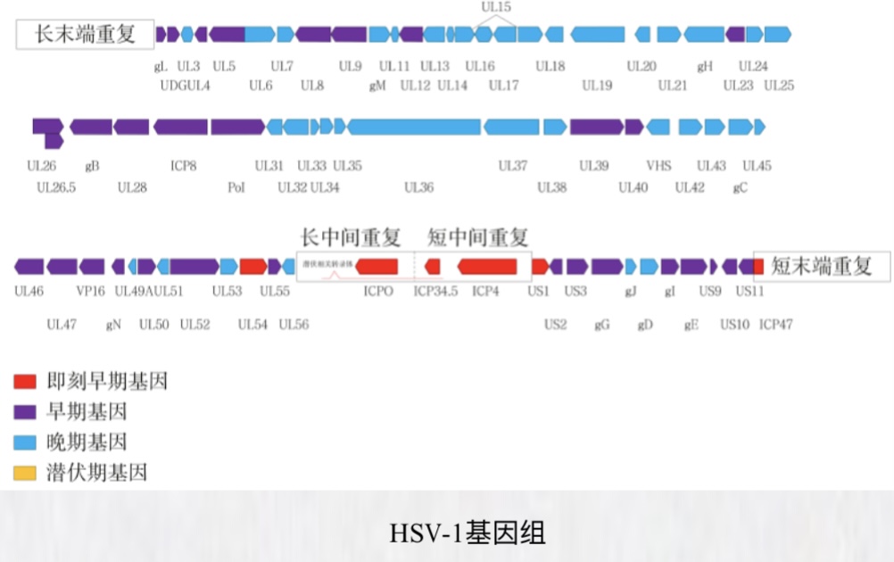 2.åŸºå› ç»„ HSV åŸºå› ç»„é•¿çº¦150kbp,编ç 至少70多ç§è›‹ç™½ï¼Œå…¶ä¸ç—…毒编ç 的酶类å¯ä½œä¸ºæŠ—病毒è¯ç‰©çš„é¶æ ‡ï¼Œå¦‚ä¿ƒè¿›æ ¸è‹·é…¸åˆæˆçš„æ ¸ç³–æ ¸è‹·é…¸è¿˜åŽŸé…¶å’Œèƒ¸è‹·æ¿€é…¶ã€å‚¬åŒ–病毒DNAå¤åˆ¶çš„DNAèšåˆé…¶ç‰ã€‚