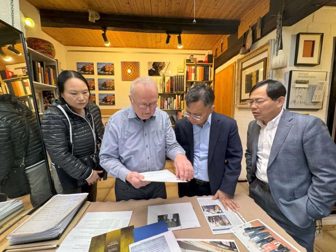 Dieter 教授及其夫人高欣女士热情接待了代表团,并带领参观了研究工作室。Dieter教授讲述了宝隆一生的传奇故事: