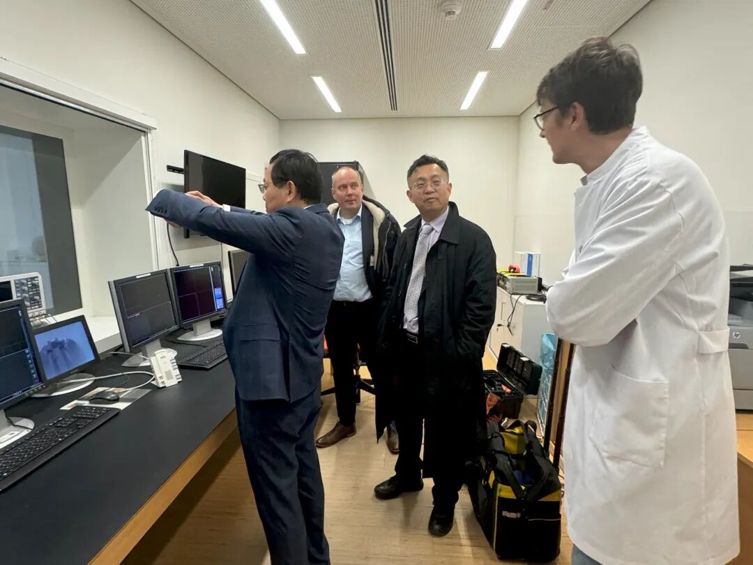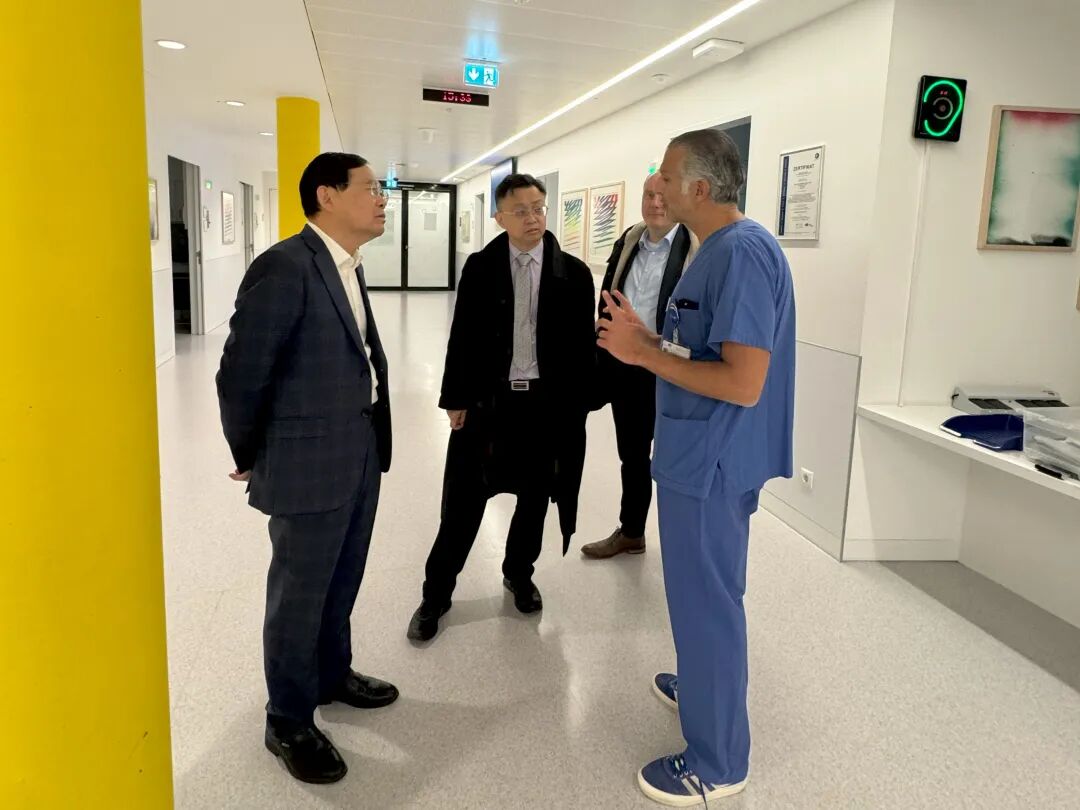 随后,郑加麟院长一行在Bernd Weber教授陪同下,参观了波恩大学医学院Venusberg校区及其附属医院。免疫研究中心副主任Dagmar Wachten教授、附属儿科中心主任Hemmen Sabir教授和神经影像研究中心主任Alexander Radbruch教授分别带领参观了免疫研究实验室、新生儿急救科重症监护室和神经影像学研究实验室,并对投入科研和临床使用的设备和组织架构进行了详细介绍。