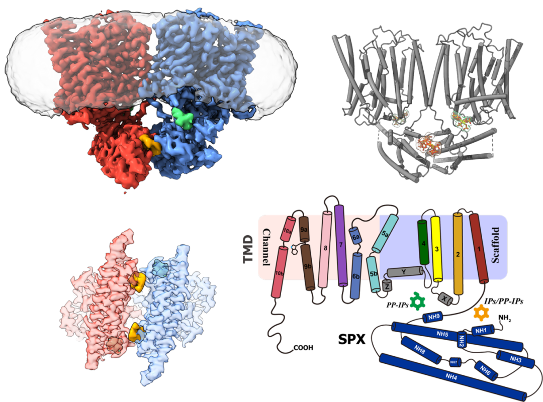 XPR1在细胞中维持磷稳态平衡的作用使之成为磷酸代谢研究与钙化疾病探索的目标。然而,其结构信息的缺乏使得人们难以理解其行使功能的分子细节,特别是其如何受到焦磷酸肌醇的激活而进行磷酸外排的调控机制。